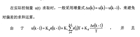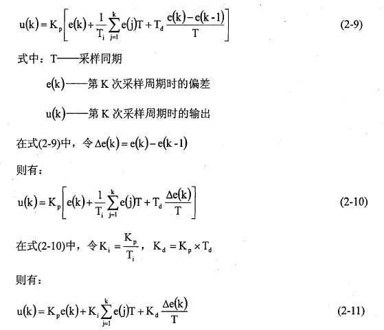 如果控制系統的硬件設計以微處理器為核心,那么該控制系統就是時間離散的控制系統,它以采樣頻率對輸入和輸出量進行實時采樣,所以PID控制器采用差分方程表示: